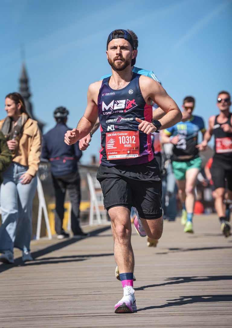 Ancien footballeur, Miguel a découvert la course à pied en 2016 et depuis, il n’a cessé de repousser ses limites. Il a couru son dernier marathon en 2h59 et a atteint des performances plus que correctes, avec des chronos dans la barre des 35 minutes sur 10 km. Toujours actif, il continue de progresser, avec des temps qui ne cessent de s'améliorer au fil des années. Son parcours personnel lui permet de comprendre pleinement les défis physiques et mentaux de la course, et il utilise cette expérience pour inspirer et guider ses athlètes vers leurs propres succès.